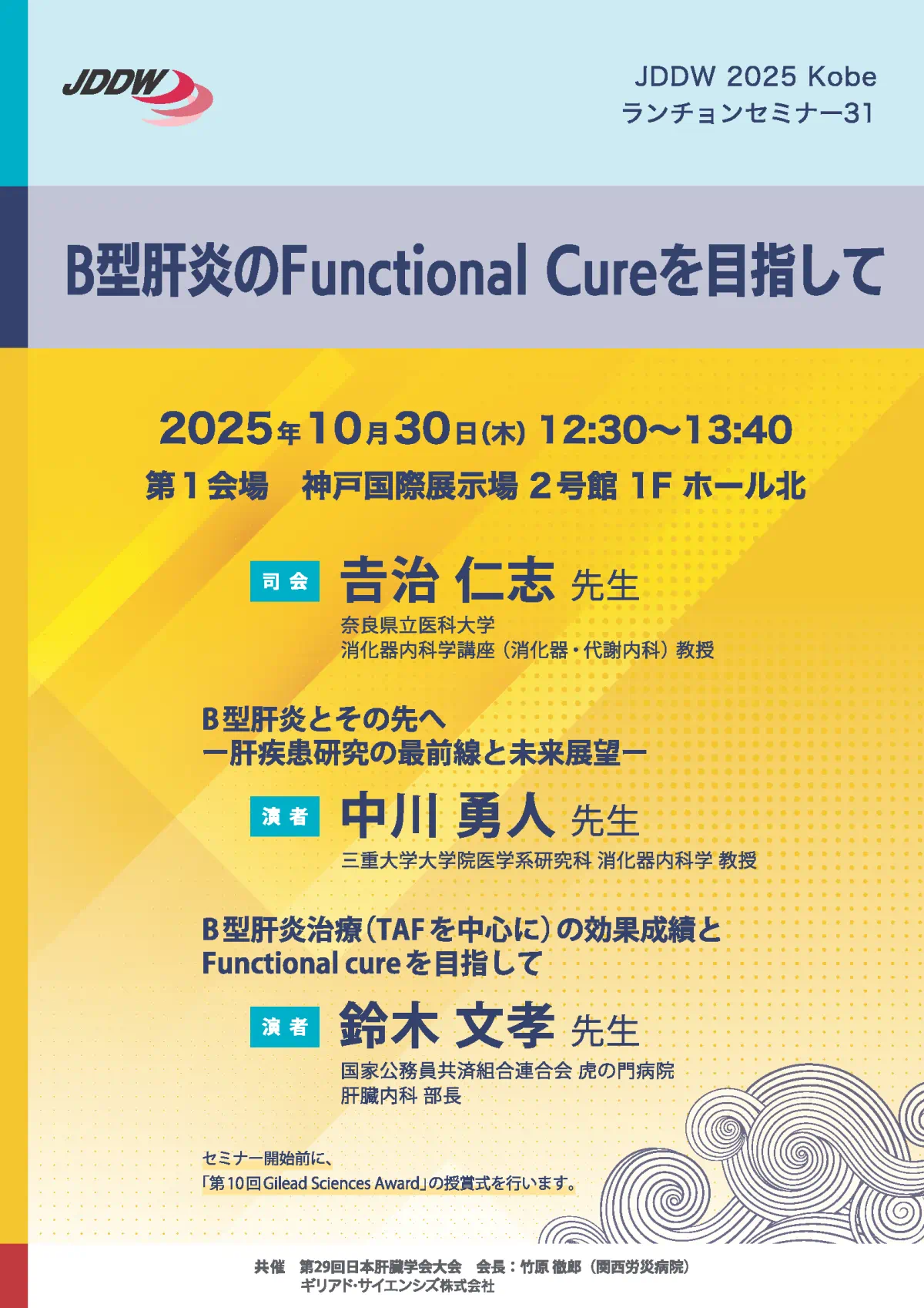 今回の講演では、B型肝炎治療薬であるベムリディの8年データから見える有効性、安全性、簡便さなどの有用性についてご講演いただきます。