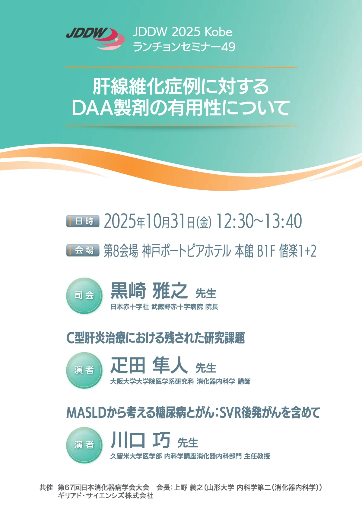 今回の講演では糖尿病を含めてMASLDの観点より、製品の適正使用と安全性と共にHCV-SVR後の重要なポイントを講演いただく予定です。