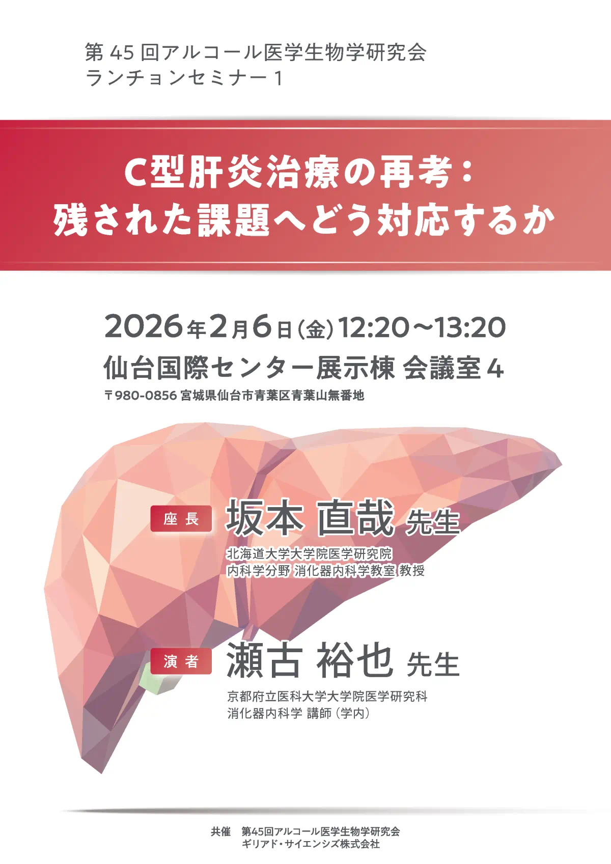 本講演では、多様化する患者背景に応じた適切な治療の在り方を考えるべく、C型肝炎に関する多角的なエビデンスを紹介する。また、京都府2次医療圏における肝炎治療の実態にも触れ、肝疾患診療の質向上に向けた課題を考察する。詳細はこちらの公式WEBサイトをご参照ください。