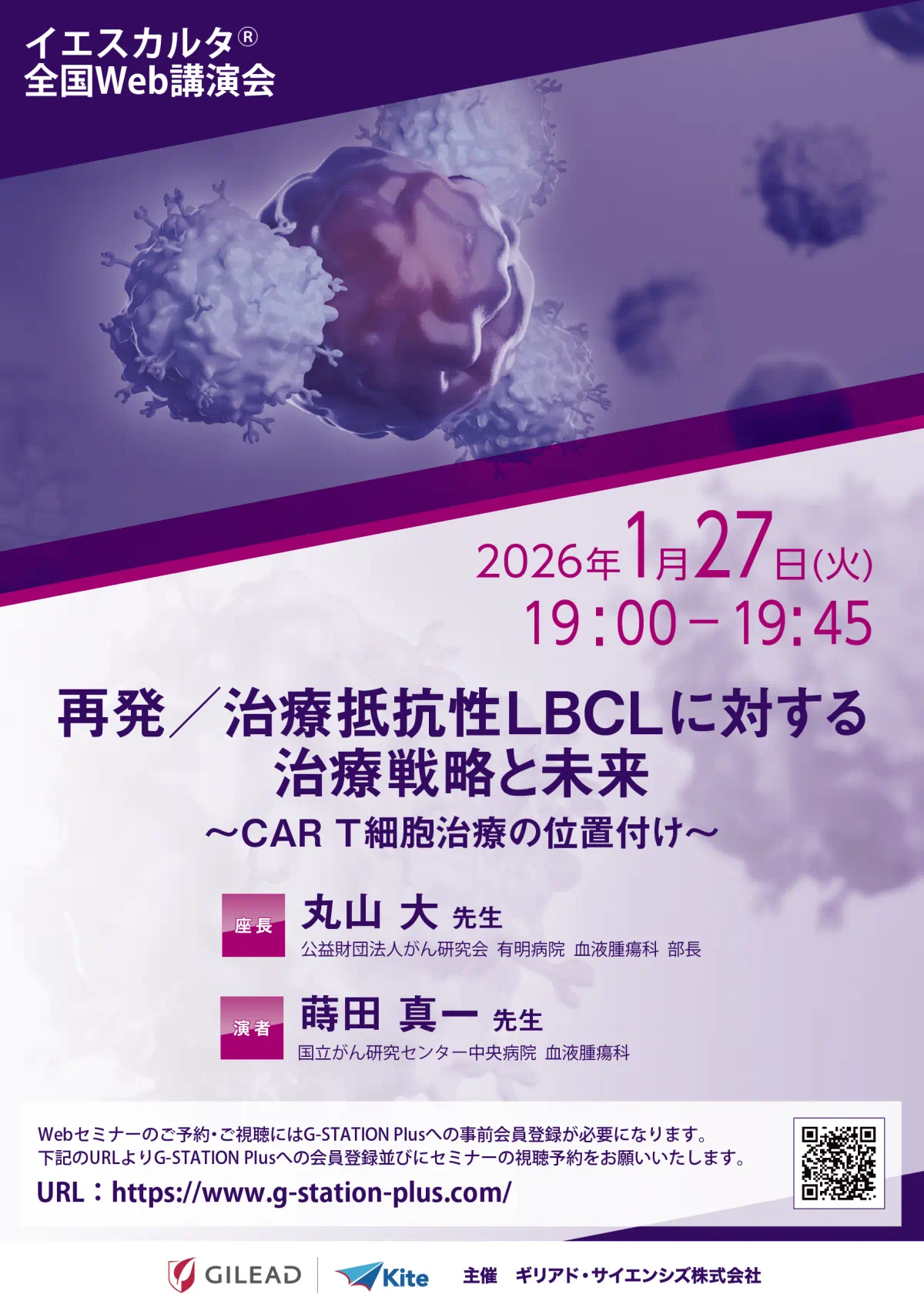 - 本講演会では国立がん研究センター中央病院の蒔田先生より、DLBCLの2次治療におけるCAR T細胞療法の治療意義並びに治療戦略における将来展望について触れていただきます。また、紹介元施設と治療施設での施設間連携に触れていただき、CAR T治療を検討するべきタイミングや適格な患者像についてご講演いただきます。