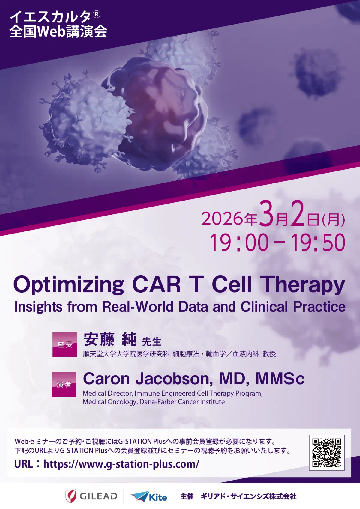 - 本講演会では、Dana-Farber Cancer Institute のDr. Caron Jacobsonをお招きし、DLBCLにおけるCAR T細胞療法の位置づけや意義、リアルワールドデータと臨床から得られた最新のエビデンス等をご講演いただきます。