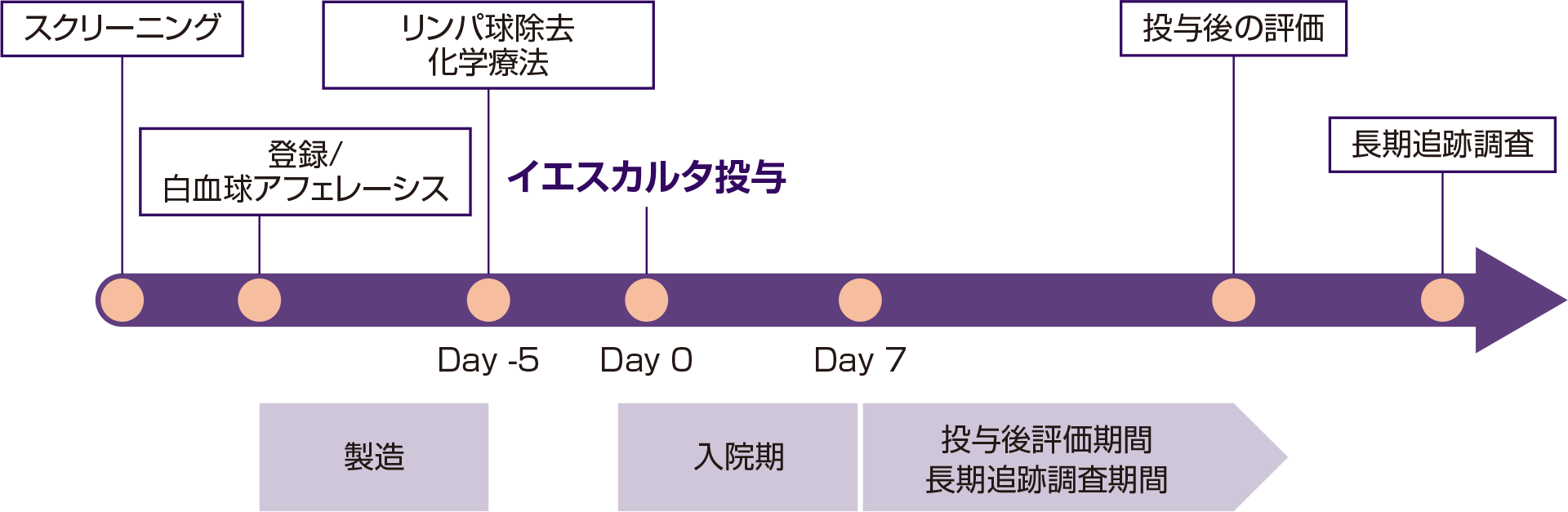 - イエスカルタ投与後2時間以内に発現する(イエスカルタ投与に関連した)即時型過敏反応で、標準治療によりイエスカルタ投与後24時間以内にグレード2以下に回復したもの